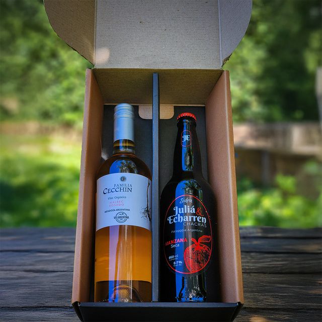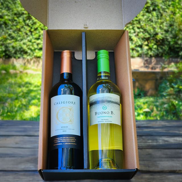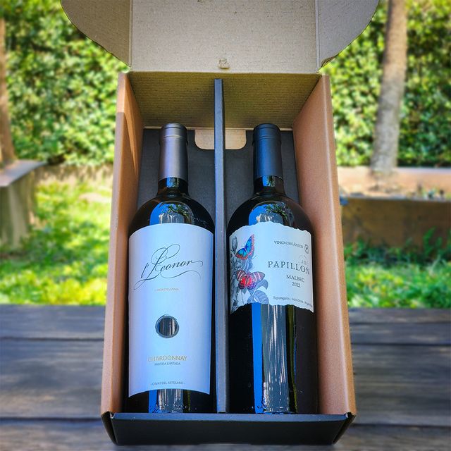 Caja para regalo. Capacidad para dos botellas. Ideal para cumpleaños, aniversarios o simplemente un regalo.