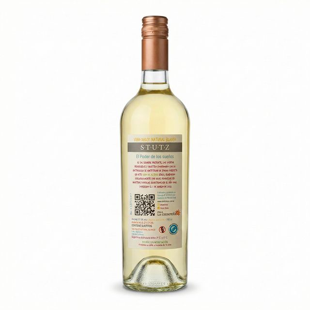 Vino orgánico de altura. Dulce natural, frutado (ananá, durazno, pera, litchi) y floral (flores blancas, azahar). Bodega Stutz - Finca La Chimpeña. Valle de Cafayate- Salta.