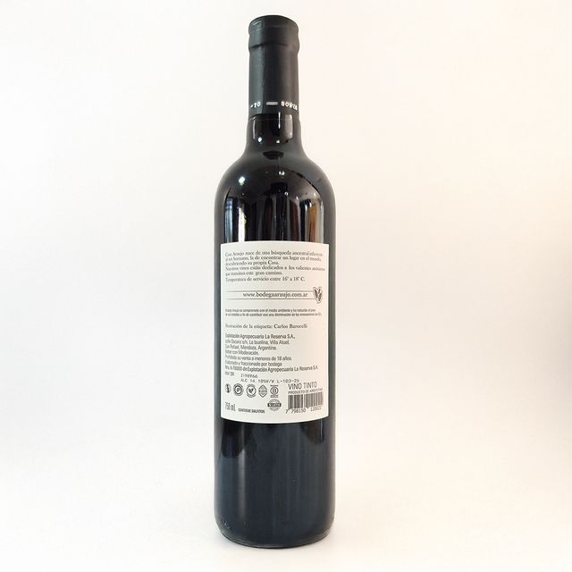 A base de 50% Malbec, 35% Cabernet Sauvignon, 15% Merlot. Elaborado por el enólogo de la bodega. Elegante, potente y equilibrado. Paso por barrica de roble francés. Bodega Araujo. San Rafael. Mza.