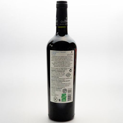 Vino orgánico joven, de color violáceo intenso, aromas clásicos de pimiento, pimienta negra y cuero, y una boca estructurada con taninos firmes pero equilibrados. Bodega Araujo. San Rafael, Mendoza.