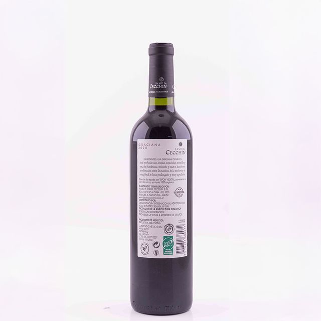 Vino orgánico joven, de gran complejidad aromática, combina ciruelas, violetas e higos. Bodega Araujo. San Rafael, Mendoza.