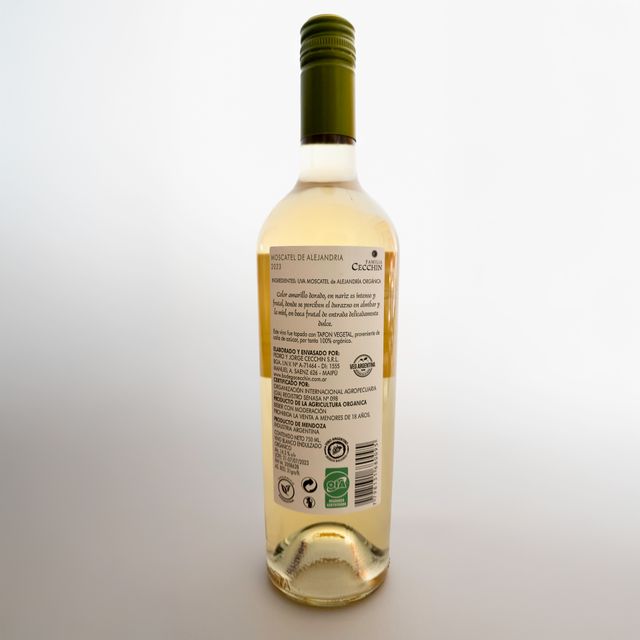 Vino de exportación. Aromático con notas de almendra y avellana fresca y cáscara de cítrico. Bodega Vinecol. La Paz- Mendoza.