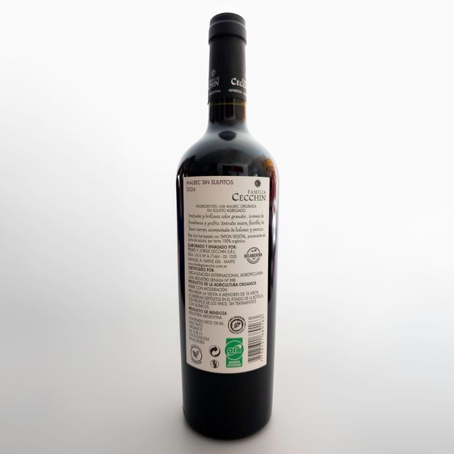 Vino natural sin sulfitos agregados. 80% Malbec - 20% Torrontés. Bodega Santa Julia de Familia Zuccardi. Maipú - Mendoza.
