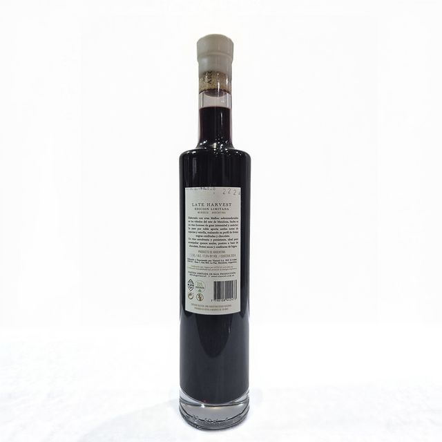Vino licoroso tinto, edición limitada. Su paso por roble le aporta sutiles notas de especias y vainilla, realzando su perfil de frutas negras confitadas y chocolate. Bodega Vinecol. La Paz- Mendoza.